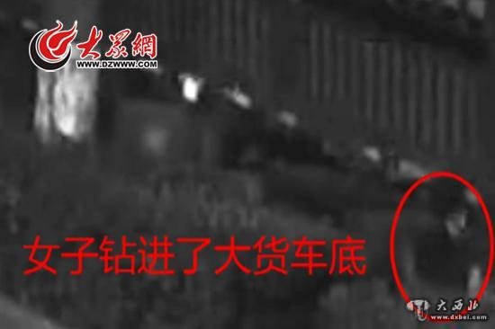 女子自行钻进大货车底,大货车司机称他对此毫不知情。