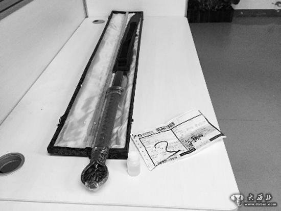 记者以360元的价格在这名微商的手中购买了一把唐刀。付款四天之后,记者收到了一份一米多长的快递,只见刀具被一个纸壳围得严严实实,纸壳里是一个锦盒,里面放置的就是记者购买的这把唐刀。