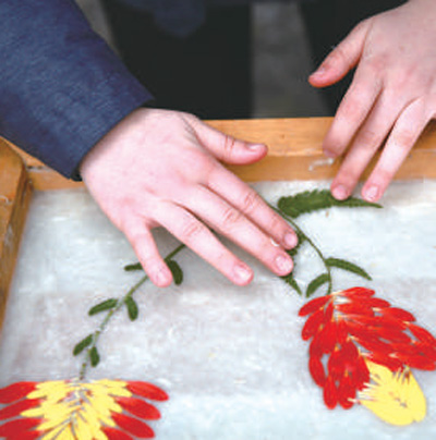 游客体验花草纸制作技艺。