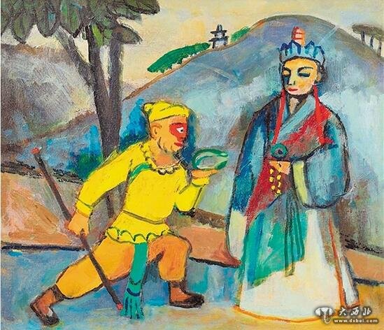 关良唐僧与悟空1978年作油画