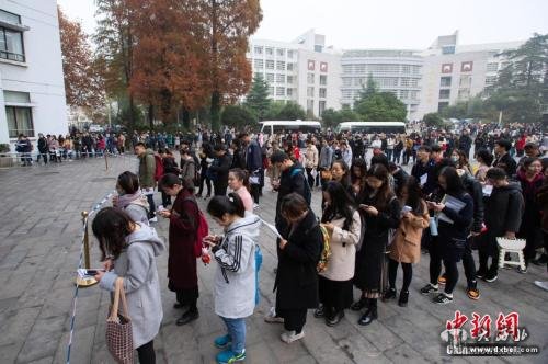资料图2019年国考,考生排队进入考场。中新社苏阳摄