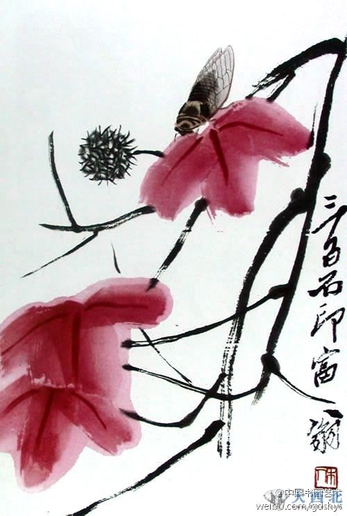 齐白石 20年代作品《枫叶寒蝉》