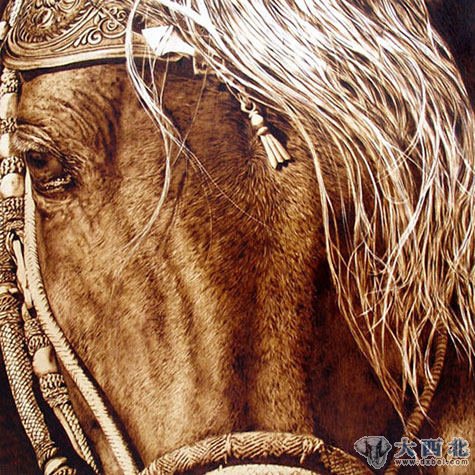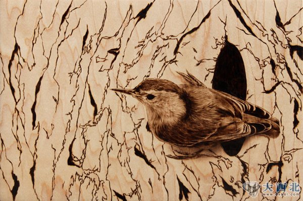 用火烧烙铁在木板上作画称为烙画(Pyrographic),又称烫画,火笔画,百度百科称烙画是古中国一种极其珍贵的稀有画种,源于西汉,不过现在不常见到。图为美国艺术家julie bender在枫木上绘制的精美烙画作品。