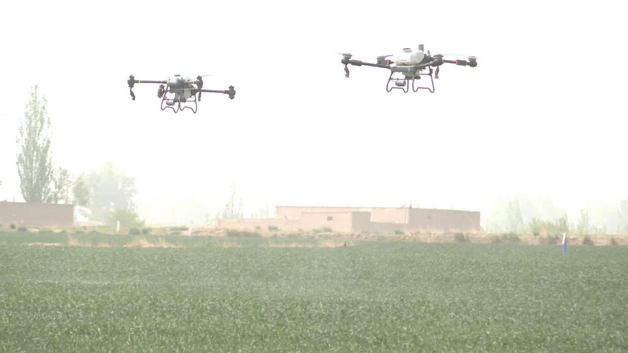 永昌县丰泽园农民种植专业合作社负责人张琰忠:我们的冬小麦现在已经进入拔节麦穗期,也是高产的一个关键环节,现在叶面喷施的分几个部分,一个是营养部分,有氨基酸有尿素有二氢钾之类的,也有抗逆的,比如说杀菌剂。今年的天气高温低温变化多,作物容易生病,所以提前预防,可以为将来的高产奠定一个基础。使用植保无人机最大的好处就是快,正常情况下两台机器每天能喷一千亩地,同时,对田间庄稼苗的损伤几乎为零,这也是增加产量的关键。