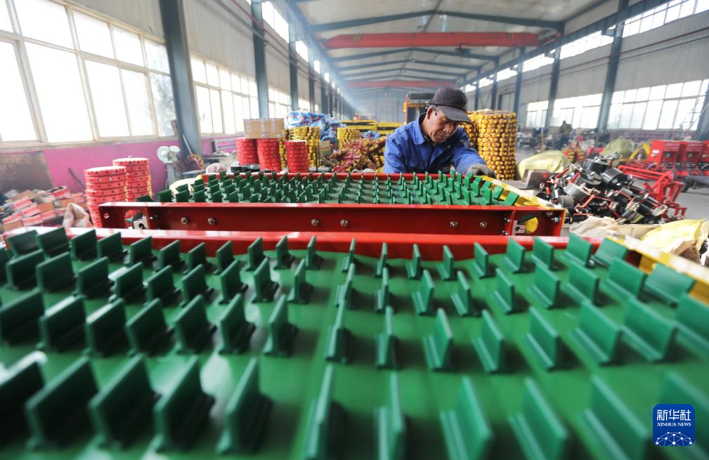 2月21日,工人在甘肃省定西市一家农机制造企业组装农机。新华社发(王克贤摄)