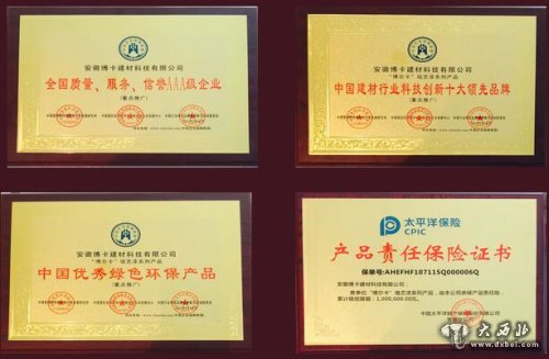 该公司研发生产的博卡幻彩墙艺漆系列产品以给客户提供安全、艺术、健康、环保的生活和工作环境为己任,产品均环保耐用,展现独特的空间视角,微妙而生动,令人耳目一新。博尔卡墙艺漆产品是绿色建材认证产品、安徽市场名优产品,是全国用户满意产品、全国质量稳定合格产品、中国抗菌标志认证产品,中国涂料工业协会推荐产品。