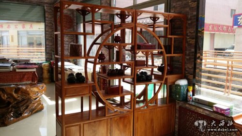 在兰州北龙口装饰建材城二楼中北区,是东阳木雕家具体验店较为集中的区域,行走在店铺林立的街区间,木雕家具体验馆比肩呈现。