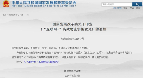 国家发改委提出,高效物流的发展目标是:先进信息技术在物流领域广泛应用,仓储、运输、配送等环节智能化水平显著提升,物流组织方式不断优化创新;基于互联网的物流新技术、新模式、新业态成为行业发展新动力,与“互联网+”高效物流发展相适应的行业管理政策体系基本建立;形成以互联网为依托,开放共享、合作共赢、高效便捷、绿色安全的智慧物流生态体系,物流效率效益大幅提高。