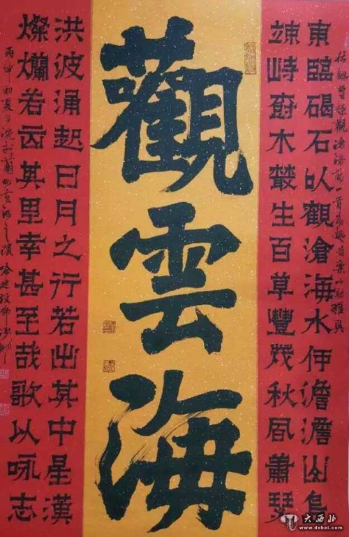 位于B馆专题展区的《莫高霞光——当代艺术展》,展示了哈建设《观云海》等数幅隶书、草书、行书、楷书作品。现场作品展现了其大气磅礴、痛快淋漓的艺术特点,从整幅气象到每一个字的气韵,呈现出圆劲刚建又飞动流畅,自然朴率又一气呵成,内涵丰富又神采奕奕的艺术风格,许多参观者赞赏说,哈建设书法作品的字里行间能够让人看到对敦煌精神的传承与创新之处。敦且煌,厚重而又辉煌。