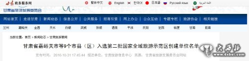 大西北网讯 记者王占东 近日,国家旅游局公布了第二批创建“国家全域旅游示范区”名单,甘肃省嘉峪关市等9个市县(区)入选。位于嘉峪关市的中华孔雀苑等多个重点景区成为推进全域旅游发展的前沿阵地和引擎力量。