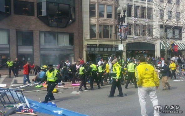 爆炸发生在博伊尔斯顿大街的终点线旁边,赛事的冠亚军当时已经已经产生,但仍有大批业余跑手没有完成赛事,终点线上聚集大量围观者和工作人员。