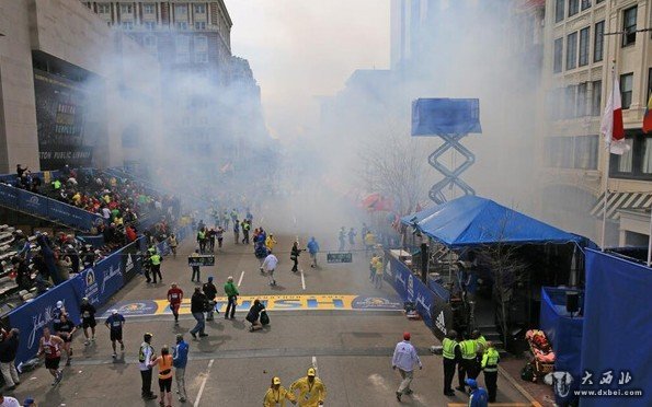 有电视台拍摄到爆炸的一刻,当时大约在当地下午两时,正有跑手冲过终点,旁边的大楼外突然传出巨响,并冒出大量白烟。