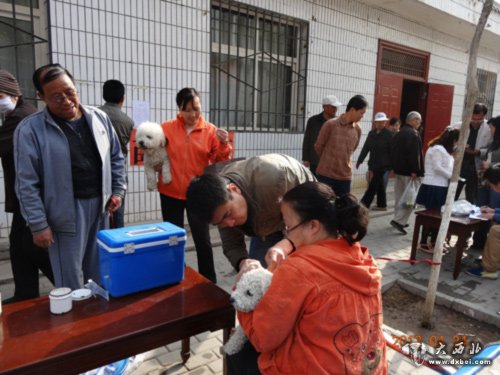 鑫报讯 “快!”到社区给狗狗打针了。4月24日,西固区先锋路街道协调区动物疾病预防控制中心,组织相关人员走进南山社区,为辖区居民的犬只注射狂犬病疫苗。