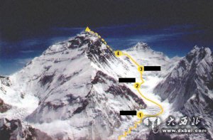 第二营地即前进营地,海拔约6500米,登山者在这里只需避免过于靠近雪山,防止雪崩。这里也是各登山队生火造饭的最后一个营地,再往后登山者就只能吃方便食品了。 沿着固定好的绳索攀登到海拔约7500米的山台,即第三营地。这段路途经过峻峭、晃眼的冰壁,虽然难度不大,但稍有闪失就可能丧命。 再往上是海拔约7950米的第四营地。第三第四营地之间的路途极具挑战性。这段路程在登山者多次往返熟悉环境后可4小时完成,初次攀登者可能需要8个小时。