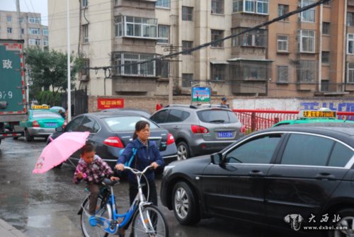 在大润发十字路口,因为雁西路的修建,道路变窄,车辆行驶缓慢,所以造成十字路口的拥堵,一位交警在忙碌着指挥行人过马路,另一位交警在马路中间指挥过往车辆的顺利通过信号灯,还有一位交警专门在施工路口为经过的人们带路,以保证人们的通行安全,几位交警的认真的工作态度立刻感染了记者,一上午过去了,几位交警还忙碌在马路上,他们顾不上擦拭脸上的灰尘。