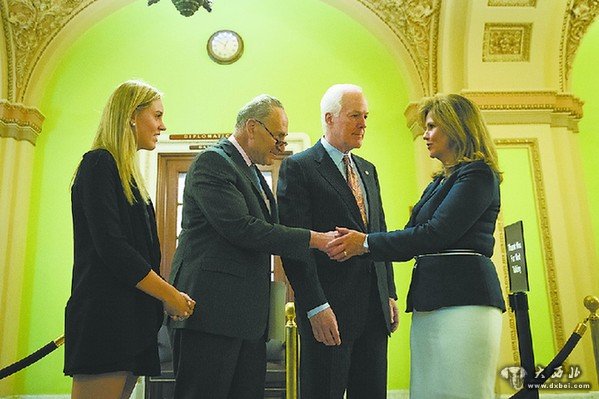 17日,美国参议员在通过《制裁恐怖主义支持者》法案后与“9·11”受害者家属握手。
