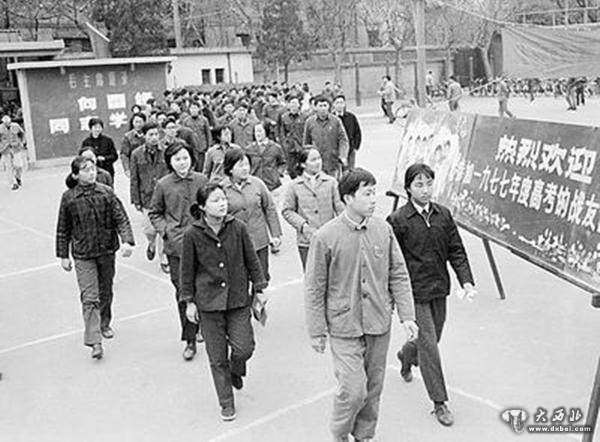 这一年,北京某高考考场外的一句标语特别引人注目:“青年们要充分认识自己所负的重任,祖国在期待你们,人民在期待你们,革命在期待你们”。“择优录取”高考制度的恢复,犹如推开了一扇希望之门,让中国社会迎来了科学和知识大放光彩的春天。