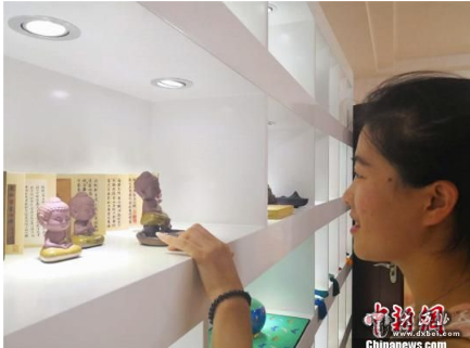 图为设计灵感取材于莫高窟的小沙弥摆件。史静静摄