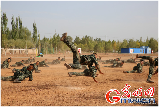 光明网阿克苏9月23日电 驻扎在新疆塔克拉玛干沙漠边缘的武警兵团总队执勤第二支队执勤二中队,身处“水、电、路”三到头的艰苦地区,勇于吃苦,甘于忍耐,忠于职守,乐于奉献,始终以能打仗、打胜仗的目标砥砺官兵血性虎气,确保拉得出、冲得上、打得赢。
