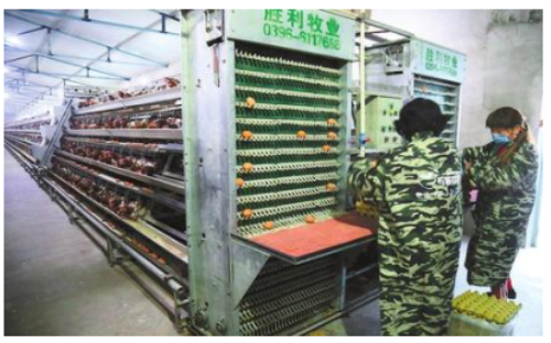 宁县刘寨村亚兴养殖合作社工人在鸡舍分拣鸡蛋。该社目前鸡存栏3万只,日产鸡蛋1800斤,年产值288万元。本报通讯员 李建强