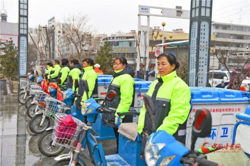 2017年12月29日,天空飘着雪花,榆中县执法局在县健身广场举行了城市管理行政执法人员新式制服换装仪式,本次换装也为环卫工人换上了新装,配上了微型电动环卫垃圾收集车。