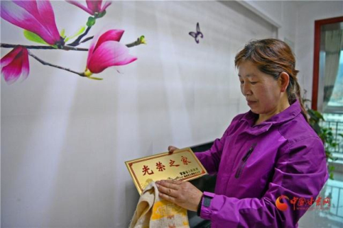 马月雄的家里干净整洁,她说:“小儿子在部队,这是前几天社区发的‘光荣牌'!”她一边擦拭一边思念着在西藏高原上站岗的儿子。