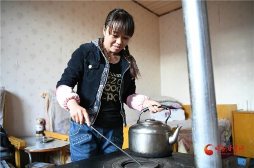 吃完早餐回到家中的胡相梅,加炭烧水准备做早餐,脸上露出一个家庭主妇的幸福笑容。