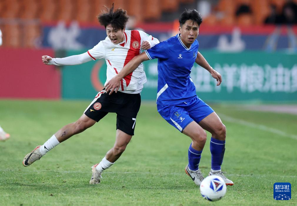 3月23日,兰州陇原竞技队球员龚芸杨(左)在比赛中拼抢。新华社记者 陈斌 摄