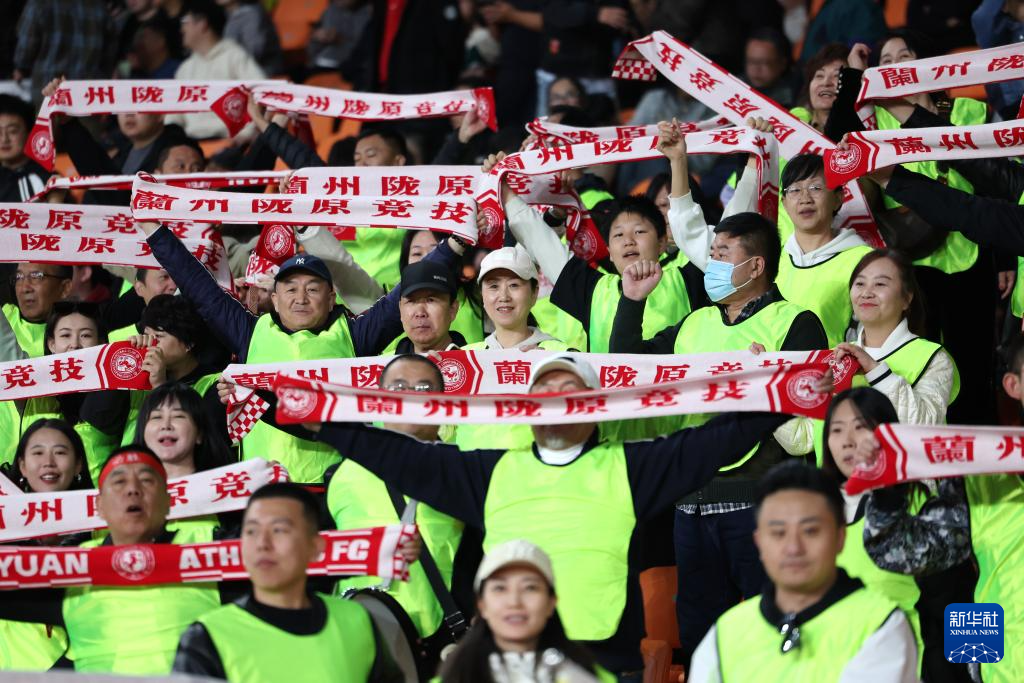 3月23日,球迷在兰州奥体中心玫瑰体育场为球队加油助威。新华社记者 陈斌 摄