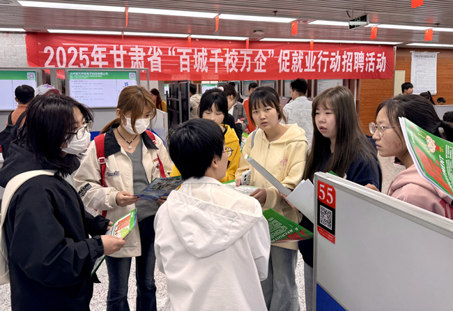 2025年甘肃省“百城千校万企”促就业行动招聘会现场。 贾笑云 摄