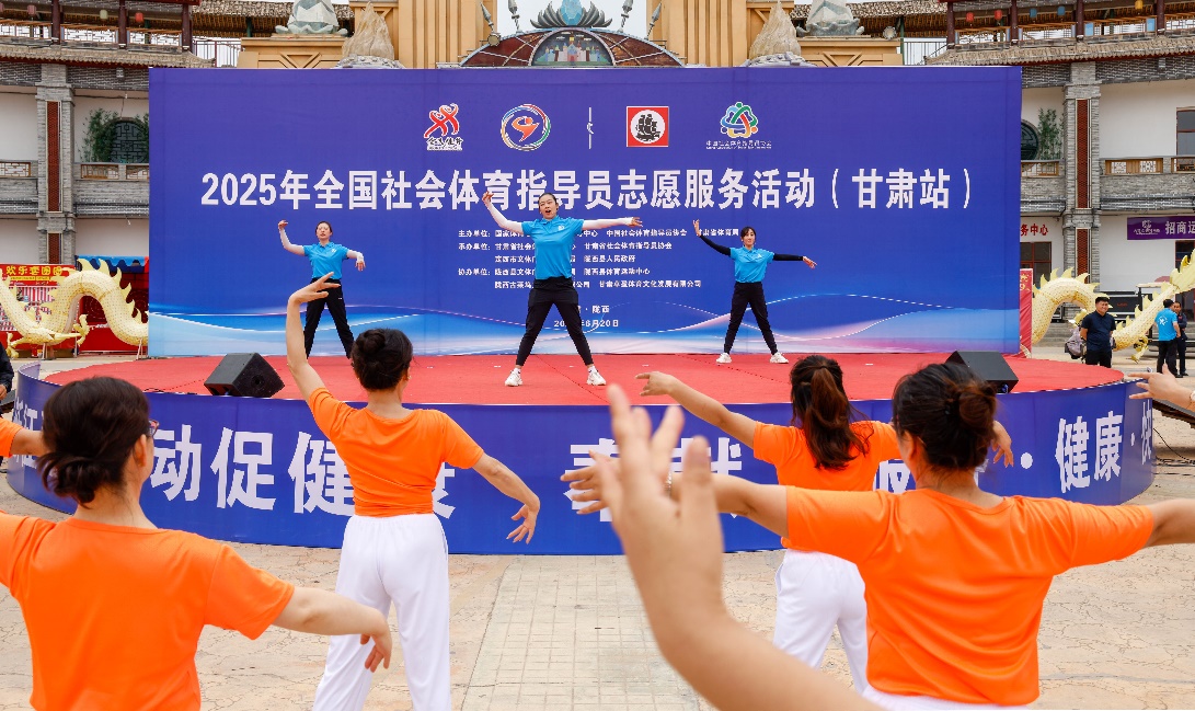 6月20日,以“奋进新征程、运动促健康”为主题的2025年全国社会体育指导员志愿服务活动(甘肃站)在陇西县举行。活动现场,三位优秀的国家级社会体育指导员,为陇西县的350名健身爱好者带来科学健身指导与互动体验。