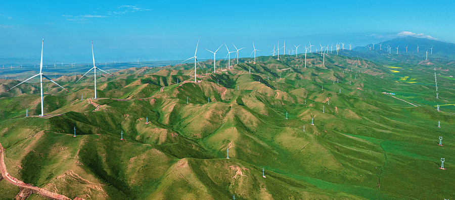 “十四五”以来,甘肃立足资源禀赋和区位优势,在新起点上拉开了“追风逐日”发展新能源的序幕,推动实施沙漠、戈壁、荒漠地区大型风电光伏基地(简称“沙戈荒”大基地)建设和驭风沐光行动、光热+、光伏治沙等项目,形成集中式开发为主、分布式开发补充、产业体系完善的多元融合发展格局。曾经干旱荒凉的戈壁滩“冒出”一片片“风机森林”和“光伏海洋”,迸发出勃勃生机。