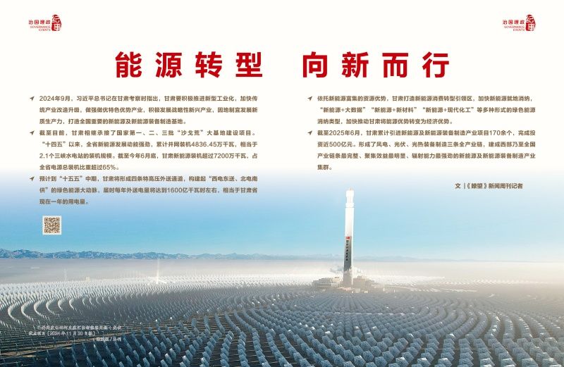◇2024年9月,习近平总书记在甘肃考察时指出,甘肃要积极推进新型工业化,加快传统产业改造升级,做强做优特色优势产业,积极发展战略性新兴产业,因地制宜发展新质生产力,打造全国重要的新能源及新能源装备制造基地。