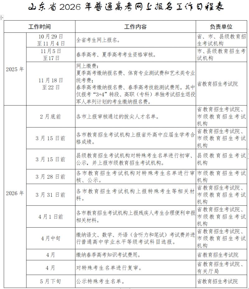 2026年山东高考报名开始、截止时间