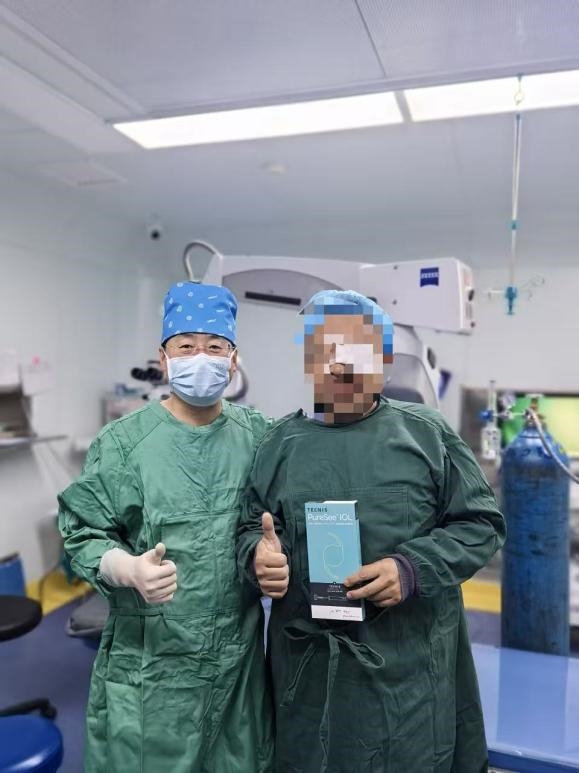 谈及此次手术,吴教授表示:“在临床中,我们发现大部分的白内障患者都存在屈光不正的问题,他们除了希望术后能够摆脱白内障之外,也希望能够实现摘镜自由,能够像年轻时一样,自由切换远、中、近距离的清晰视觉。而臻无级®这款人工晶状体的设计理念,正是回归人眼自然晶状体的光学规律。本次手术的患者是一位10年前做过初代全飞秒屈光手术的患者,患者目前从事企业管理方面的工作,对全程视力要求高,且乐于接受新事物,经过对患者的眼睛进行详细的检查和评估,并与患者充分沟通其用眼需求后,我们建议选择了臻无级®这款人工晶体。臻无级®采用的纯折射技术在光学干扰上可控制在近似单焦点的水平,很大程度上减少了患者术后存在的眩光、光晕等问题,对于这类做过屈光手术的患者来说术后视觉质量改善更明显,且包容性更好,同时也能实现从看远到看近的连续视力。术后第一天患者远中近视力就达到了:1.0,1.0,0.8,视力得到明显的改善提升,患者非常满意!“