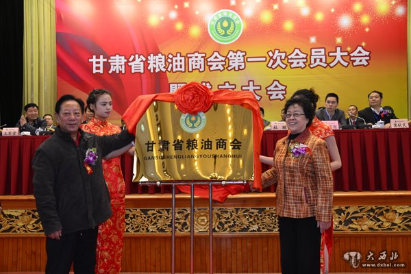 甘肃省人大原副主任程有清、杜颖为甘肃省粮油商会揭牌。 贾笑云 摄
