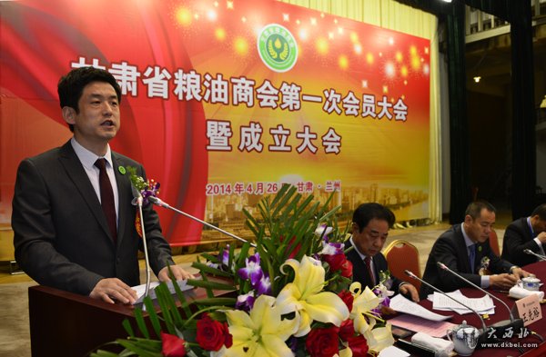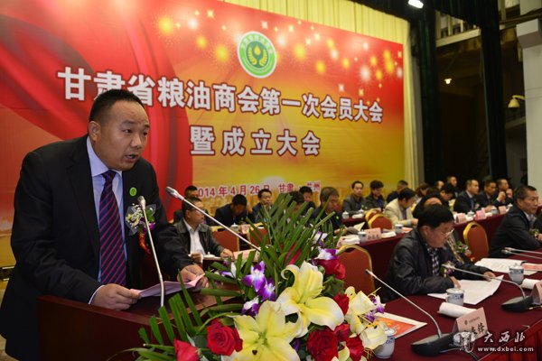 新当选的甘肃省粮油商会会长安春锋致词。 贾笑云 摄