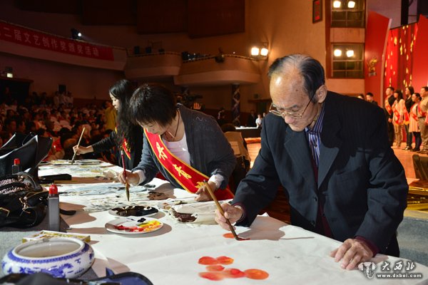 德高望重的老艺术家汪玉良等在活动现场作画。 贾笑云 摄