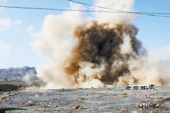 大西北网5月28日讯 据《兰州晨报》报道:近日,白银市平川治安管理大队在平川区共和乡西和村一处荒滩内,对查扣的1552公斤过期炸药和16375枚雷管进行集中销毁。据了解,此次销毁报废炸药和雷管,分局治安大队事先制定了严密的销毁方案,并聘请了甘肃久联民爆器材有限公司白银雪松分公司的专业技术人员现场操作。