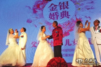 当晚7时30分,金银婚典在兰州皇冠假日酒店正式开始。大屏幕上,播放着儿女们对老人们的祝福。首先上场的是银婚夫妇,他们的年龄大都在50岁至60岁之间,是上世纪70年代或80年代结婚的。如今,他们的儿女们都已30岁左右,几位银婚夫妇还当上了爷爷奶奶。