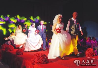 原标题:17对爷爷奶奶叔叔阿姨穿西服披婚纱走过红地毯