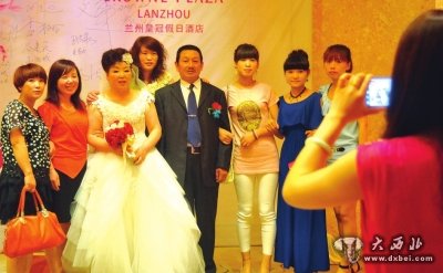 大西北网6月9日讯 据《兰州晚报》报道:上世纪“五十年代一张床,六十年代一包糖,七十年代红宝书,二十一世纪则是特色婚礼个性张扬。”6月6日晚,17对爷爷奶奶叔叔阿姨在子女的簇拥下,穿上西服,披上婚纱,走上红地毯,重温当年牵手时的浪漫甜蜜。当天的“新人”中,年龄最大的80岁,年龄最小的也有50多岁,有些老人已是四世同堂。