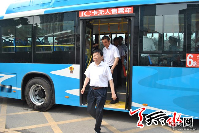 副市长雷鸣在宣布首批清洁能源公交车投入运营后,试乘了清洁能源公交车。在公交车上,雷鸣详细了解了清洁能源公交车的性能以及设施配置等情况,听取了我市交通运输部门以及羲通公交旅游集团负责人就现有公交车逐渐更换为清洁能源公交车的工作计划以及加气站建设等情况的汇报。