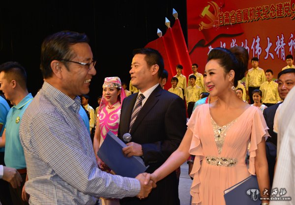 甘肃省委常委、秘书长李建华接见演出人员。 贾笑云 摄