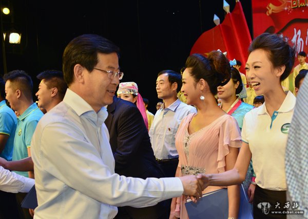 甘肃省委副书记欧阳坚接见演出人员。 贾笑云 摄