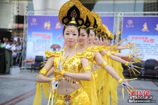 大西北网7月7日讯:据中新网消息,近日,兰州火车站一线铁路职工在火车站广场演绎敦煌舞蹈“千手观音”,向旅客推介铁路丝路敦煌游。据了解,兰州铁路局将于7月10日首次开行Y667/8次“敦煌号”旅游专车,将以“敦煌号”列车服务为窗口,提升旅游服务接待能力,让海内游客踏上列车,开始敦煌之旅,让更多的游客探访神秘的“河西走廊”。 (责任编辑:鑫报)