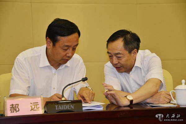 郝远与黄小祥在会上交谈 。 贾笑云 摄