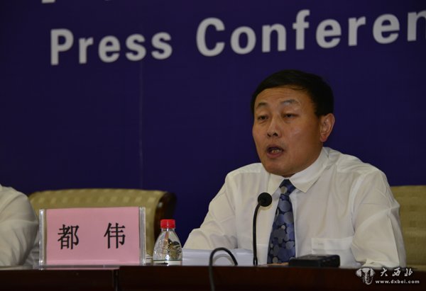 酒泉市委副书记、市长都伟在新闻发布会讲话。 贾笑云 摄