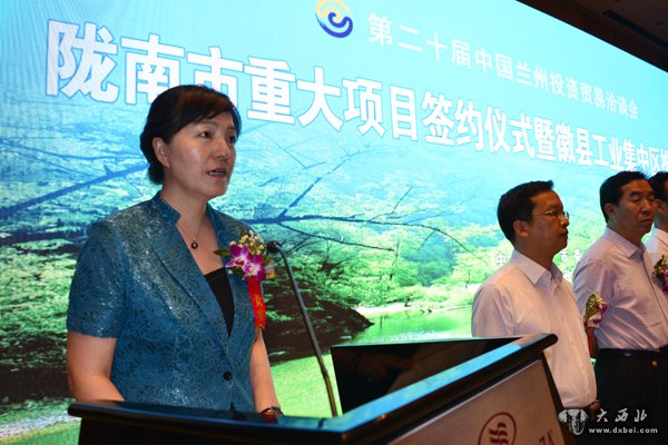 陇南市委书记孙雪涛在签约仪式上致词,陇南市委副书记、市长陈青主持签约仪式。