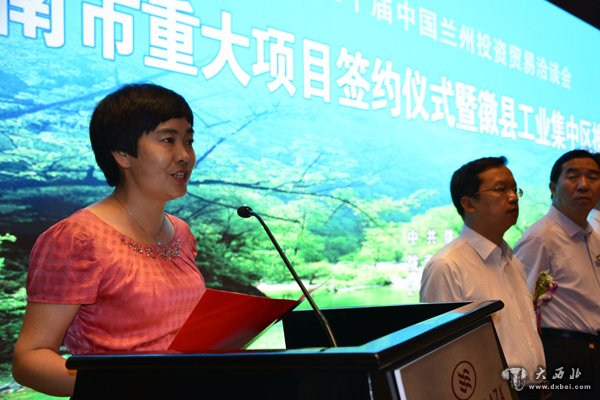 陇南市徽县工业区管委会主任武冰在签约仪式上发言。 贾笑云 摄